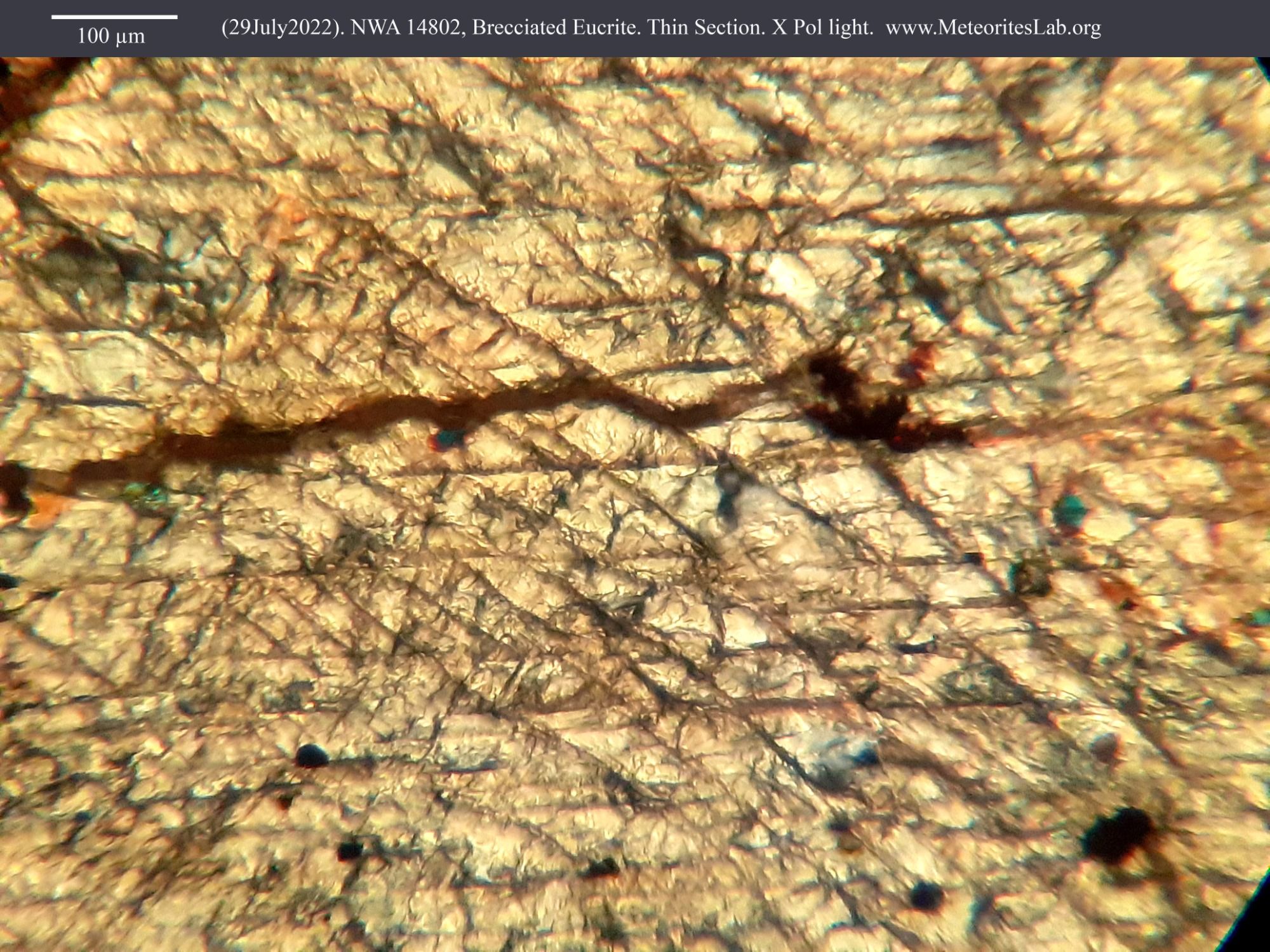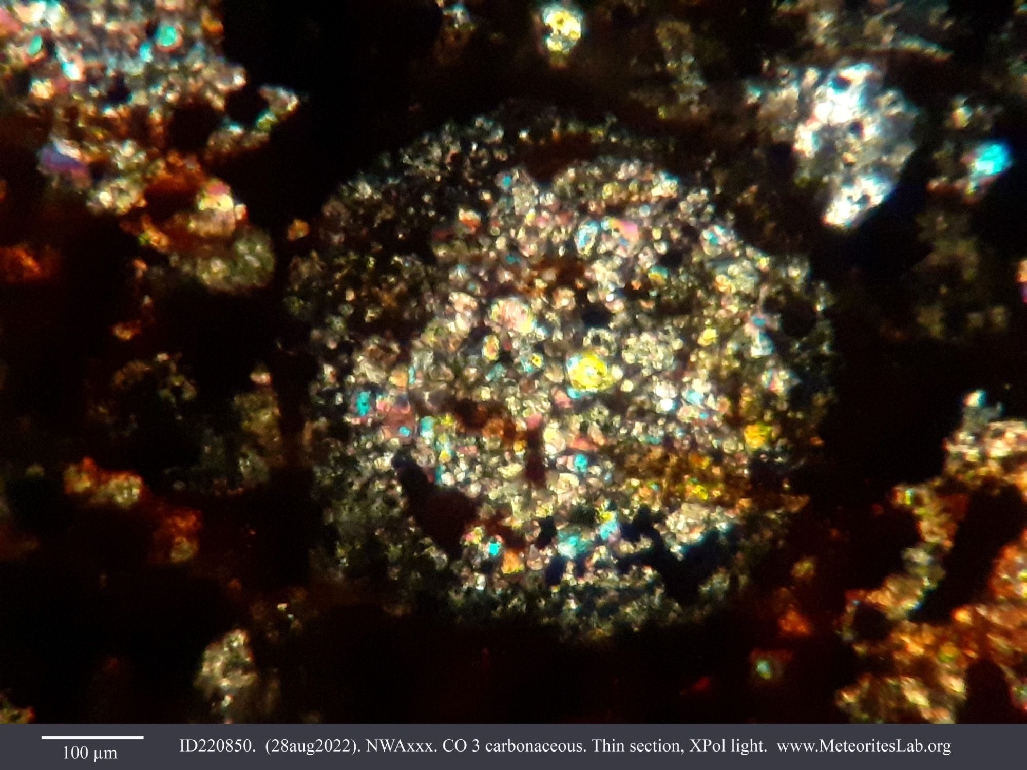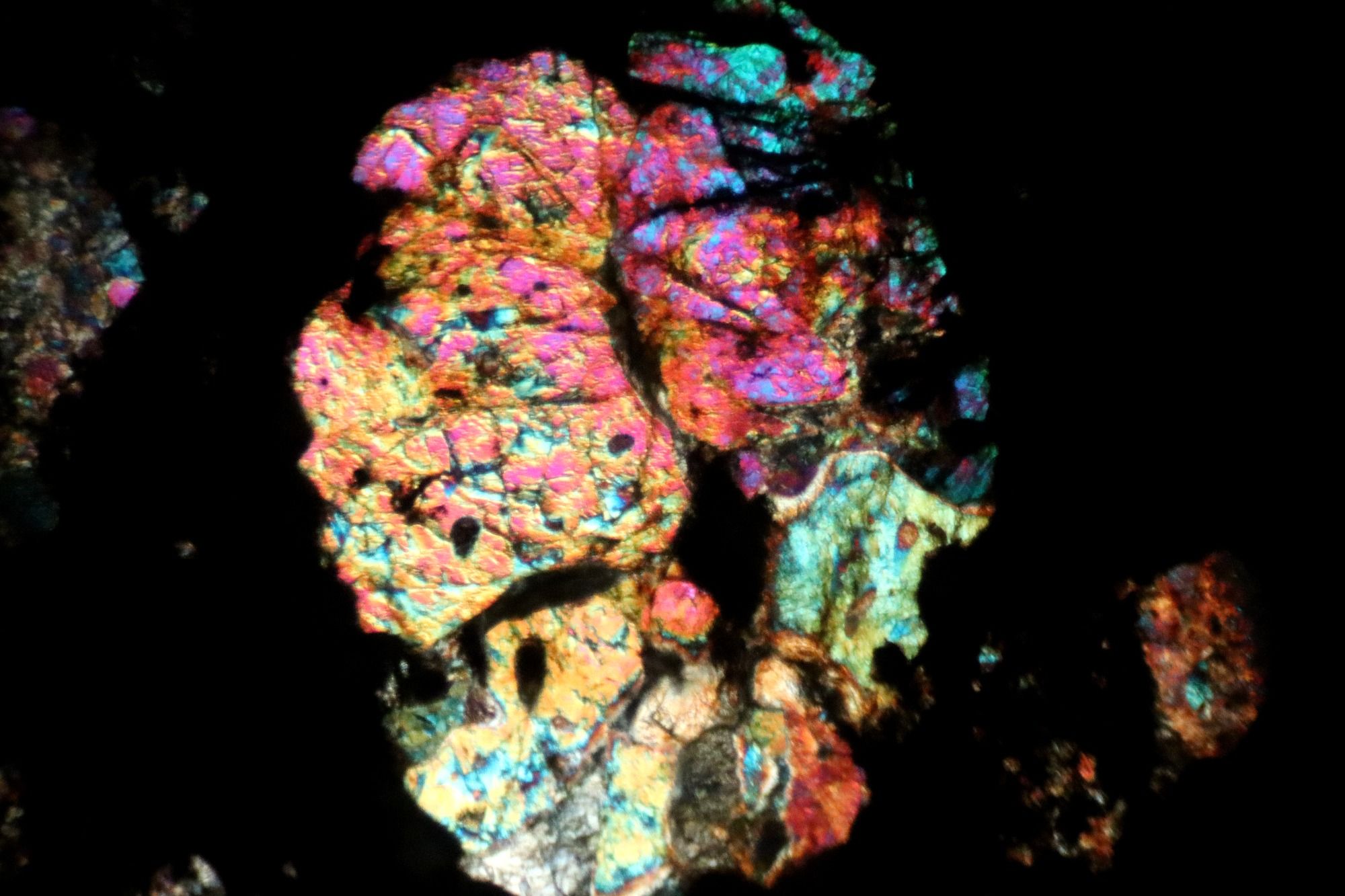 The analysis of meteorites through thin sections and petrographic technique allows us to enjoy spectacular characteristic images of each type. In this gallery we share some of the most beautiful images that we have obtained in the laboratory.